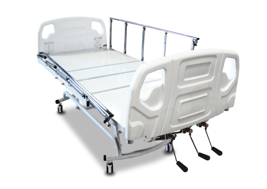 MOVIMENTOS: cárdico, fowler, flexão, semi-fowler, elevação, sentado e trendelemburg, acionados através de três manivelas cromadas escamoteáveis;